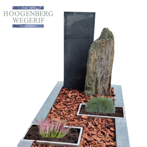 Monument Black Pearl leather touch met Franse Lei en cortenstalen plantenbakken