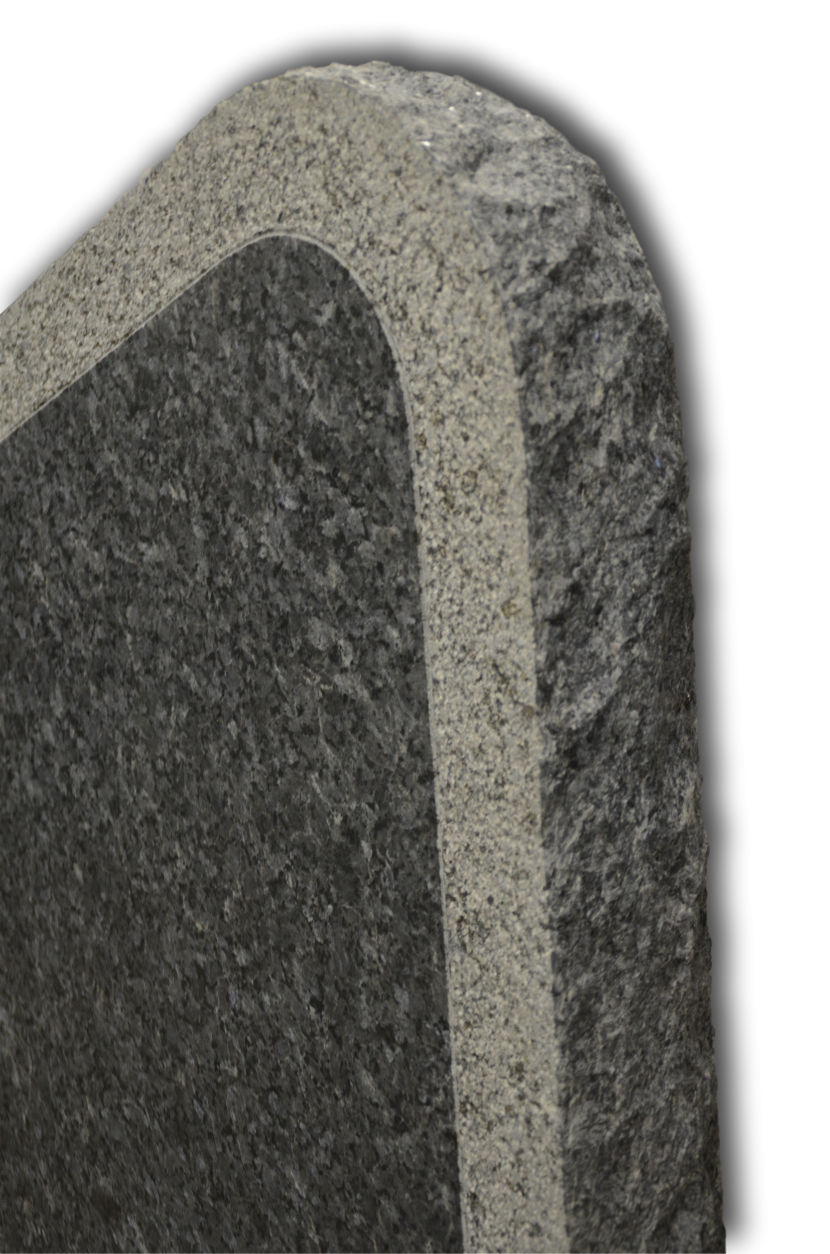 Deze grafsteen uit het assortiment van Hoogenberg-Wegerif combineert modern design met een natuurlijke afwerking. De asymmetrische vorm geeft het monument een eigentijds karakter, terwijl de combinatie van een gepolijste binnenkant en een ruwe, natuurlijke rand zorgt voor een harmonieus contrast. Dit ontwerp symboliseert de verbinding tussen bewerking en puurheid, tussen verfijning en de natuurlijke oorsprong van het materiaal.
