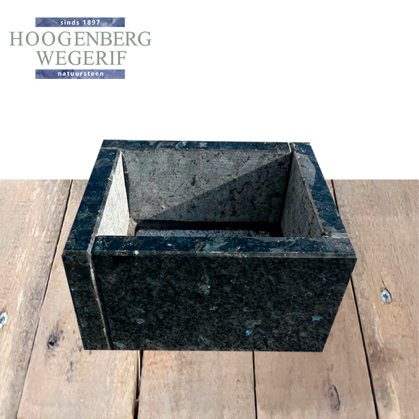 Dit kleine granieten bloembakje, vervaardigd uit hoogwaardig natuursteen Donker Labrador gepolijst biedt een duurzame en elegante manier om een gedenkplek te verrijken. De strakke afwerking en natuurlijke kleurnuances geven het geheel een stijlvolle uitstraling.