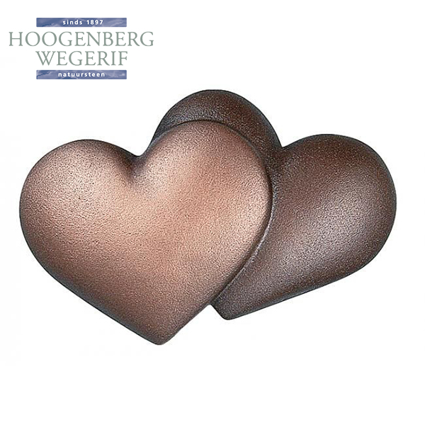 Dit bronzen ornament met twee overlappende harten staat voor liefde, samenzijn en verbondenheid. De eenvoudige, maar krachtige vormgeving benadrukt de harmonie tussen de harten, terwijl de zachte rondingen en subtiele kleurnuances zorgen voor een warme en tijdloze uitstraling.