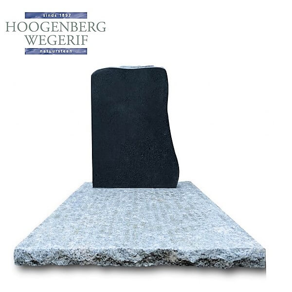 Deze grafsteen is een prachtig voorbeeld van de combinatie van strakke lijnen en natuurlijke materialen. Het zwarte, gepolijste gedeelte biedt een krachtig visueel contrast met de rustieke, grijze granietplaat aan de basis. Deze minimalistische en elegante uitstraling maakt de grafsteen bijzonder geschikt voor wie een eenvoudig, maar indrukwekkend gedenkteken zoekt.