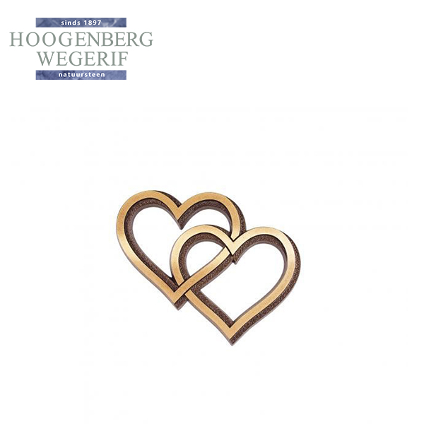 Dit bronzen ornament met twee in elkaar verweven harten staat symbool voor eeuwige liefde, verbondenheid en herinnering. De strakke lijnen en warme bronskleur geven het ontwerp een moderne en elegante uitstraling, terwijl de subtiele structuur in het materiaal zorgt voor diepte en karakter.