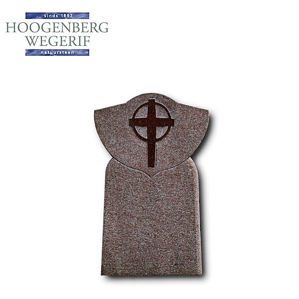 Het natuursteen heeft een warme, roodbruine tint die zorgt voor een rustgevende en harmonieuze uitstraling. De afwerking combineert zachte, ronde vormen met strakke lijnen, wat het monument een evenwichtige en betekenisvolle uitstraling geeft.