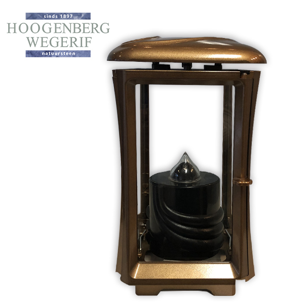 Bij Hoogenberg-Wegerif bieden we een breed assortiment aan graflantaarns in diverse materialen en stijlen, waaronder deze elegante bronskleurige aluminium uitvoering. Neem gerust contact met ons op voor meer informatie of voor advies over het kiezen van de perfecte lantaarn voor uw gedenkplaats.