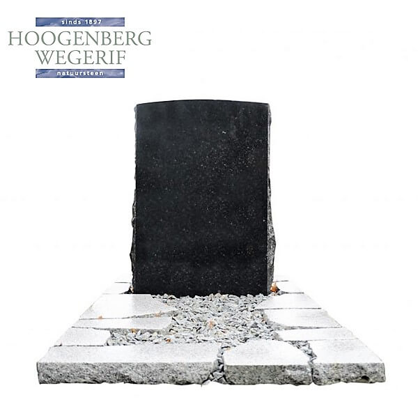 Dit grafmonument van Hoogenberg-Wegerif heeft een krachtige en eigentijdse uitstraling. Het ontwerp bestaat uit een massieve, rechthoekige grafsteen met scherpe randen, die een modern en gedurfd karakter uitstraalt. Het gebruik van zwart graniet geeft het monument een elegante, tijdloze uitstraling, terwijl de lichte schaduwen die op het oppervlak vallen, de steen extra diepte geven.