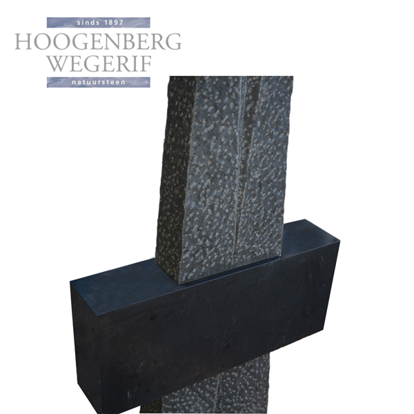 Het ontwerp wordt versterkt door een strakke, horizontale plaat die de verticale vorm doorkruist. Dit zorgt niet alleen voor een krachtig visueel contrast, maar ook voor een gevoel van evenwicht. De gladde afwerking van de horizontale plaat biedt ruimte voor een persoonlijke inscriptie, waardoor het monument een unieke, persoonlijke betekenis krijgt.
