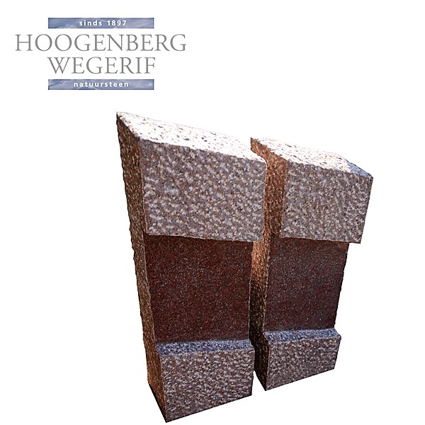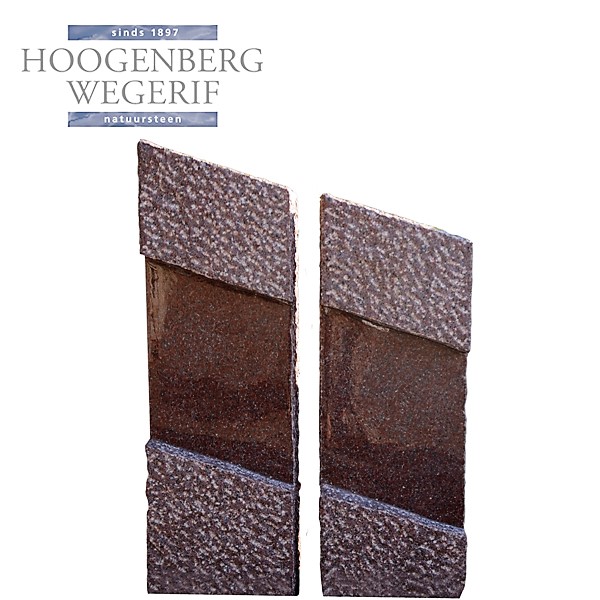 Dit bijzondere grafmonument uit het assortiment van Hoogenberg-Wegerif heeft een modern en symbolisch ontwerp. De twee gescheiden staande delen met een subtiele tussenruimte kunnen gezien worden als een teken van verbondenheid, ondanks fysieke afstand. Dit gedenkteken straalt zowel kracht als zachtheid uit, een mooie balans tussen rouw en herinnering.