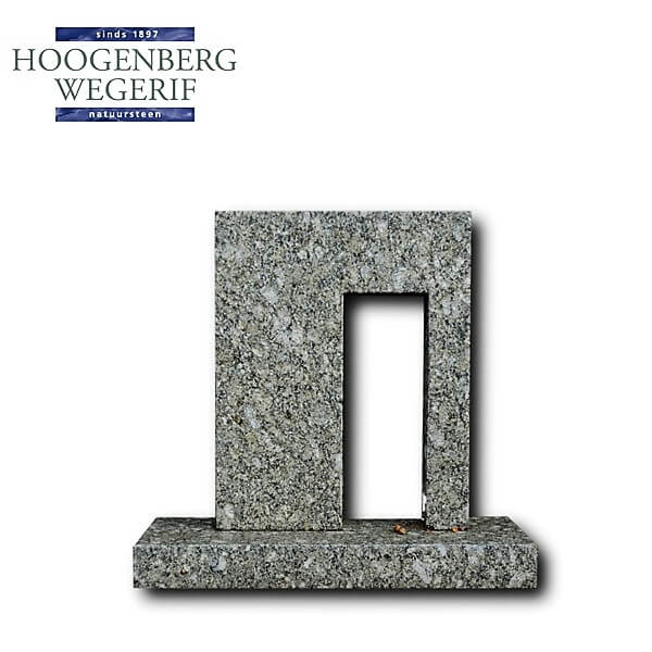 Dit moderne grafmonument uit het assortiment van Hoogenberg-Wegerif kenmerkt zich door zijn strakke lijnen en minimalistische ontwerp. De rechthoekige vorm met een open ruimte in het midden symboliseert doorgang, overgang en verbinding tussen verleden en heden. Het ontwerp straalt rust en eenvoud uit, maar heeft tegelijkertijd een diepe betekenis.