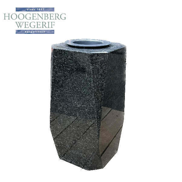 Deze grafvaas is vervaardigd uit hoogwaardig graniet, wat zorgt voor zowel duurzaamheid als een luxe uitstraling. Het gepolijste oppervlak van het graniet reflecteert het licht prachtig, waardoor de vaas een elegante en moderne uitstraling heeft.