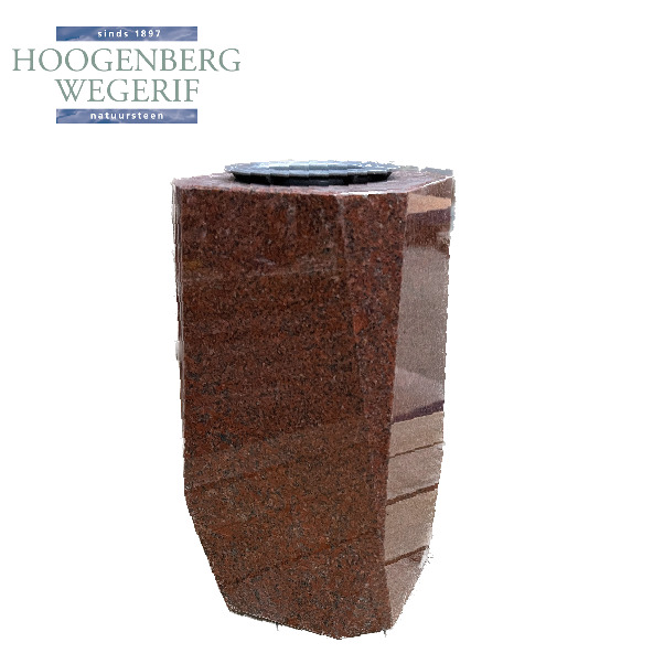 Deze robuuste grafvaas is vervaardigd uit hoogwaardig graniet, wat zorgt voor een stevige en langdurige uitstraling. Het strakke en moderne ontwerp, maakt deze vaas een stijlvolle en tijdloze keuze voor een grafmonument. Het graniet heeft een natuurlijke uitstraling, versterkt door de dieprode kleur, die een respectvolle en elegante sfeer uitstraalt.