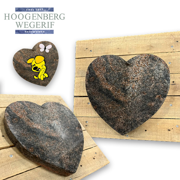 Dit elegante hart, vervaardigd uit duurzaam graniet, is een prachtig symbool van liefde en herinnering. De gepolijste afwerking benadrukt de unieke kleuren en texturen van het steen, wat het object zowel esthetisch als symbolisch waardevol maakt. Het stevige graniet zorgt ervoor dat dit hart een tijdloze uitstraling heeft, die de kracht en schoonheid van het materiaal weerspiegelt.