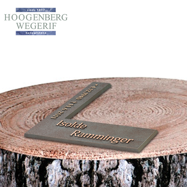 Deze bronzen hoekplaat is een verfijnd en modern gedenkelement dat op een subtiele en toch bijzondere manier een herinnering eert. Door de unieke L-vorm ontstaat een speels en eigentijds ontwerp, waarbij de naam en data op een stijlvolle wijze worden weergegeven. De verhoogde letters steken prachtig af tegen de fijn bewerkte achtergrond, wat zorgt voor een helder en goed leesbaar opschrift. Dit gedenkteken biedt een strakke en minimalistische uitstraling, zonder in te boeten op warmte en symboliek.