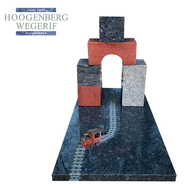 Het ontwerp bevat een opvallende boogvorm, die symbool kan staan voor verbinding, doorgang of een overgang naar een andere dimensie. Dankzij de verschillende steensoorten en afwerkingen kan dit monument volledig gepersonaliseerd worden naar uw wensen.