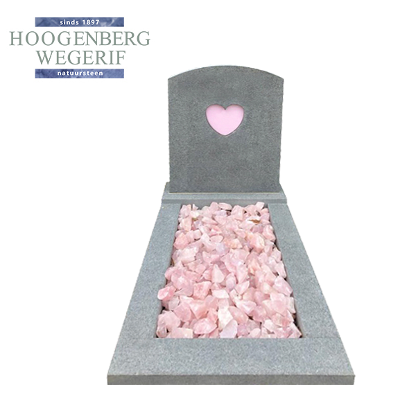 Dit elegante grafmonument combineert de kracht van grijs graniet met de zachtheid van een hartvormig glazen element. Het hart, subtiel verwerkt in de steen, symboliseert liefde, herinnering en verbondenheid.