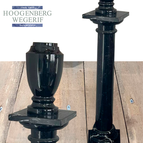 Bij Hoogenberg-Wegerif streven we naar een perfecte balans tussen esthetiek en duurzaamheid. Deze marmeren pilaar is zorgvuldig vervaardigd om bestand te zijn tegen weersinvloeden en behoudt zijn elegante uitstraling door de jaren heen. De pilaar kan op zichzelf een bijzondere toevoeging zijn aan een grafmonument, maar biedt ook de mogelijkheid om gecombineerd te worden met een bijpassende zwarte granieten vaas, voor een compleet en harmonieus geheel.