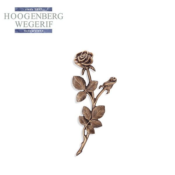 Deze bronzen roos is een tijdloos symbool van liefde, respect en herinnering. De verfijnde details van de bloemblaadjes, bladeren en knop geven het ornament een natuurlijke en elegante uitstraling. Met zijn warme bronskleur en sierlijke vorm voegt deze roos op subtiele wijze een betekenisvol element toe aan een gedenkplek. De roos staat symbool voor onvoorwaardelijke liefde en blijft, net als herinneringen, altijd bestaan.