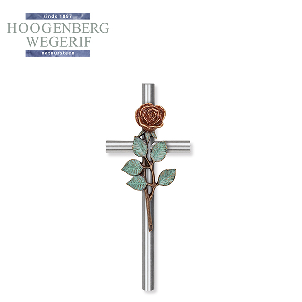 Bij Hoogenberg-Wegerif staat vakmanschap centraal. Dit kruis is zorgvuldig vervaardigd uit duurzaam metaal, waardoor het bestand is tegen weersinvloeden en geschikt is voor zowel binnen als buiten. De bronzen roos met haar zachte patina geeft het geheel een unieke uitstraling, waarbij kracht en tederheid samenkomen.