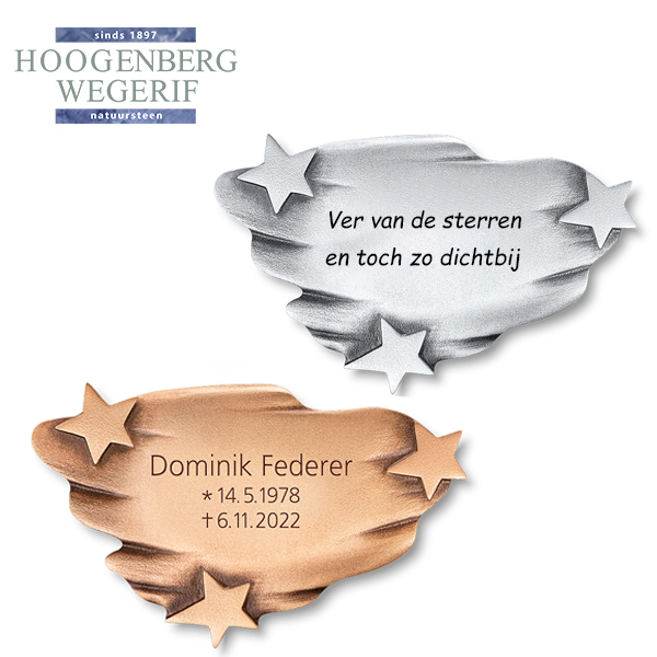 Bij Hoogenberg-Wegerif wordt elk gedenkteken met zorg en vakmanschap vervaardigd. De bronzen uitvoering straalt warmte en elegantie uit, terwijl het aluminium een moderne en subtiele uitstraling biedt. Beide materialen zijn duurzaam en bestand tegen invloeden van buitenaf, waardoor de herinnering voor altijd bewaard blijft. De mogelijkheid tot personalisatie met een naam, datum of korte tekst maakt elk exemplaar uniek en persoonlijk.