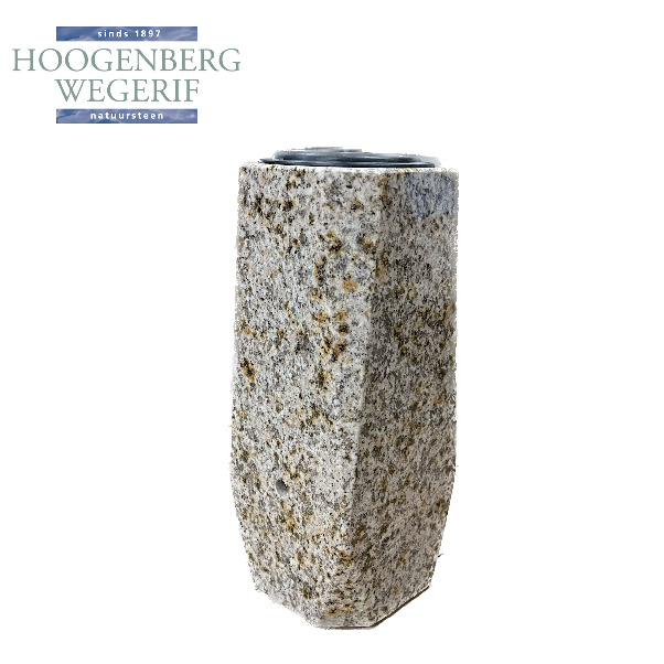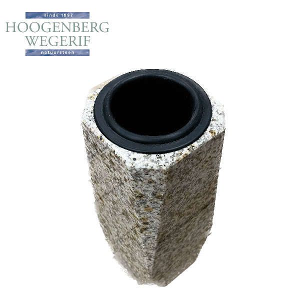 De vaas is voorzien van een rubberen rand voor het gemakkelijk plaatsen van bloemen. Dankzij de robuustheid van het graniet blijft de vaas in uitstekende staat, ongeacht de weersomstandigheden. Het is een prachtige keuze voor het verfraaien van een graf en het herdenken van een dierbare op een tijdloze manier.