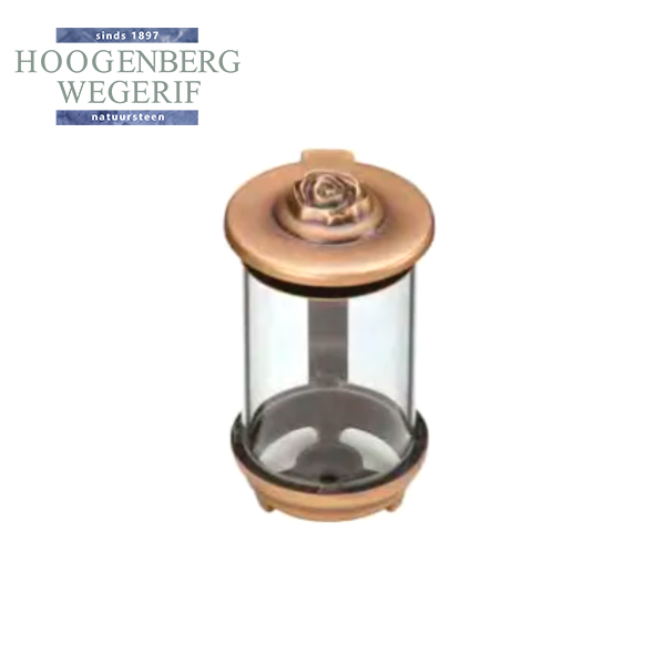 Deze compacte lantaarn is een verfijnd en stijlvol accessoire voor een gedenkplek. De ronde vorm en het transparante glas geven een open en tijdloze uitstraling, terwijl de bronzen afwerking zorgt voor een warme, klassieke touch. Bovenop de lantaarn prijkt een subtiele roos, een symbool van liefde en herinnering.